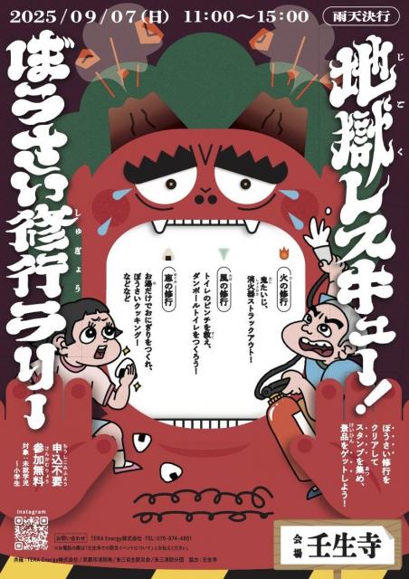 株式会社テラエナジーが地域と企画・運営する、お寺を舞台にした子供向け防災イベント。お寺を舞台にした6つの修行をめぐりながら、楽しく防災を体験できるスタンプラリーイベントです。ご関心のある地域やお寺のご担当者様は、直接テラエナジー様へお問い合わせください。(担当:霍野|TERA Energy株式会社)